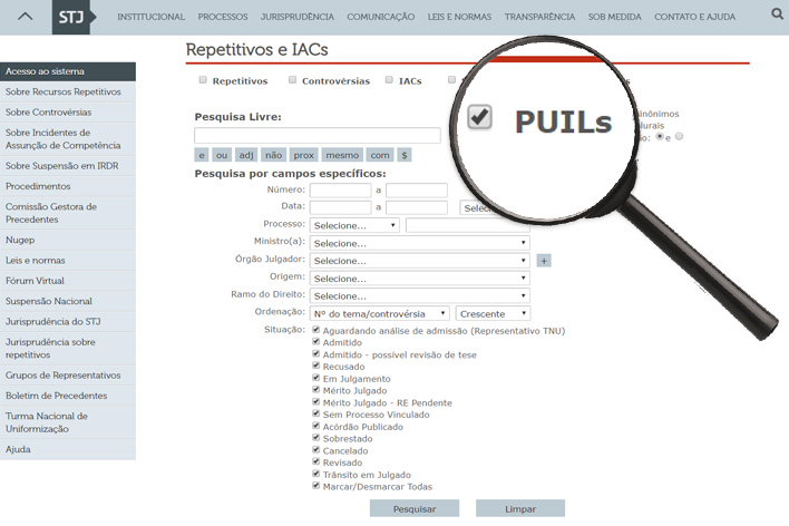 ?Uma nova ferramenta de pesquisa está disponível no site do Superior Tribunal de Justiça (STJ): agora é possível consultar os Pedidos de Uniformização de Interpretação de Lei (PUIL) admitidos, em tramitação ou já julgados pela corte.